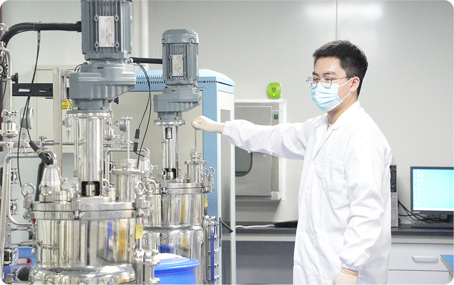 由發(fā)酵實驗室、檢測實驗室組成,配置有5L-50L-100L-1000L的不同體積的發(fā)酵罐,以及多種精密檢測儀器,進行從0-1-10的發(fā)酵工藝放大,為工業(yè)化生產(chǎn)蘡定基礎條件。